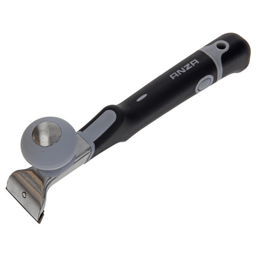 De Anza Verfschraper Pro is een professioneel gereedschap met een hardmetalen verwisselbaar mes, ergonomische softgrip en extra gripknop. Hiermee kun je snel en efficiƫnt verfresten verwijderen terwijl je comfortabel werkt. Dit maakt het een must-have gereedschap voor professionele schilders, decorateurs en thuisklussers.