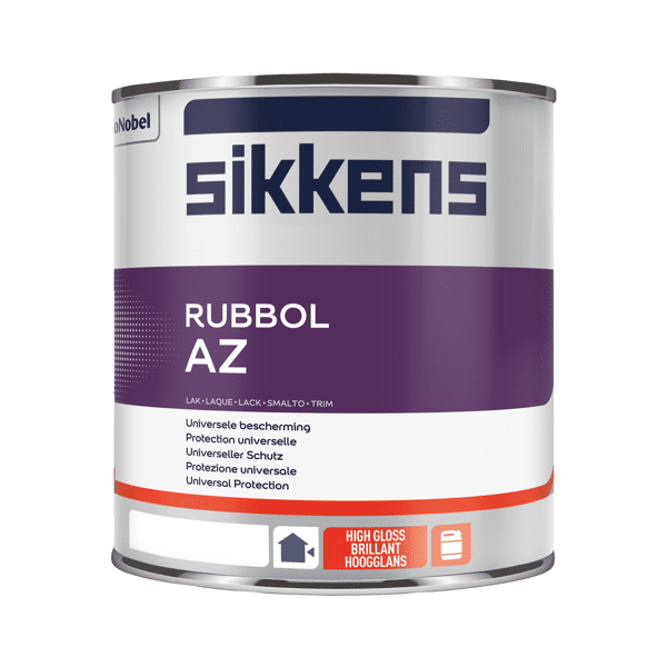 Sikkens Rubbol AZ Sikkens Rubbol AZ is een goed dekkende universele hoogglans buitenlak met een uitstekende vloeiing. Sikkens AZ biedt tot wel 5 jaar bescherming aan uw schilderwerk en is inzetbaar op houten, (non-ferro)metalen en kunststoffen ondergronden welke volgens de voorschriften zijn voorbehandeld. De hoogglans lakverf voor buiten is verwerkbaar van 5° tot 30° Celsius. Sikkens Rubbol AZ hecht ook goed op gereinigde en geschuurde oude verflagen.