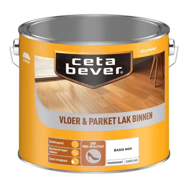 Met CetaBever Vloer- & Parketlak geef je jouw houten vloer, parket of trap een stijlvolle en beschermende afwerking op maat. Deze watergedragen lak is sneldrogend, zijdeglanzend en eenvoudig te verwerken met een kwast of lakviltroller.