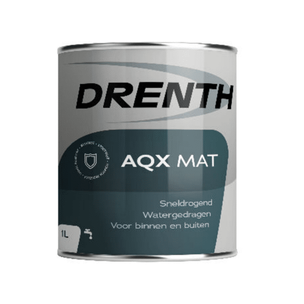 Drenth AQX Mat Drenth AQX Mat (voorheen Drenth Antonol AQX Mat) is een watergedragen zeer matte lakverf voor binnen en buiten.AQX Mat is huidvet resistent en daardoor bestand tegen slijtage door huidvetten.Daarnaast is de lak zeer goed reinigbare en slijtvast en daardoor perfect toe te passen op elke denkbare, voorbehandelde, ondergrond zoals deuren en kozijnen, ramen, muren, plafonds, lambriseringen, glasweefselbehang, aftimmeringen en radiatoren.