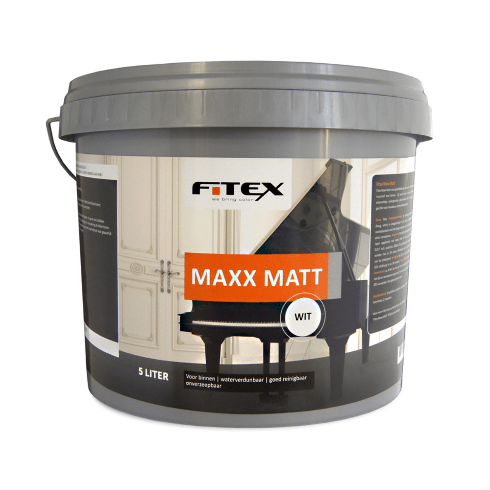 Fitex Maxx Matt - Extra Matte Universele Muurverf voor een Scherpe Prijs Gunstige Prijsstelling bij De Voordeelmarkt Ontdek de gunstige prijsstelling van Fitex muurverf bij De Voordeelmarkt ten opzichte van andere merken muurverf. Fitex Maxx Matt biedt hoogwaardige kwaliteit en extra matheid tegen een scherpe prijs, waardoor je waar voor je geld krijgt. Sterke Punten van Fitex Maxx Matt Fitex Maxx Matt is een goed dekkende, extra matte muurverf voor binnen. De voornaamste kenmerken zijn de omgevings- en gebruikersvriendelijkheid, het oplosmiddelarme karakter, de goede dekkracht, de waterverdunbaarheid en de wasvastheid. Deze eigenschappen maken het een veelzijdige en duurzame keuze voor zowel nieuwbouw- als renovatieprojecten. Aanbrengen en Schildersgereedschappen Fitex Maxx Matt is zeer prettig verwerkbaar. Voor een optimaal resultaat kun je een blokkwast of een muurverfroller gebruiken om de verf gelijkmatig aan te brengen op ondergronden zoals winddroog beton, metselwerk, gipsplaat, schuurwerk, pleisterwerk, hardboard, houtwolcementplaten, oude latex verflagen en glasweefsel. Ondergronden en Voorbehandeling Zorg ervoor dat de ondergrond schoon, droog, vetvrij en draagkrachtig is voor een optimale hechting van de muurverf. Verwijder vuil, stof en niet-hechtende delen zoals algen, schimmels en mos. Voor zuigende ondergronden is het aan te raden om een voorstrijkmiddel te gebruiken. Reiniging van de Ondergrond Fitex Maxx Matt is licht afneembaar, waardoor je gemakkelijk kleine vlekken en vuil kunt verwijderen. Let op dat bij intensief reinigen of aanraking op ondergronden binnen handbereik glanzende plekken kunnen ontstaan, vooral bij donkere kleuren. Bestel Fitex Maxx Matt nu en profiteer van de scherpe prijs bij De Voordeelmarkt!