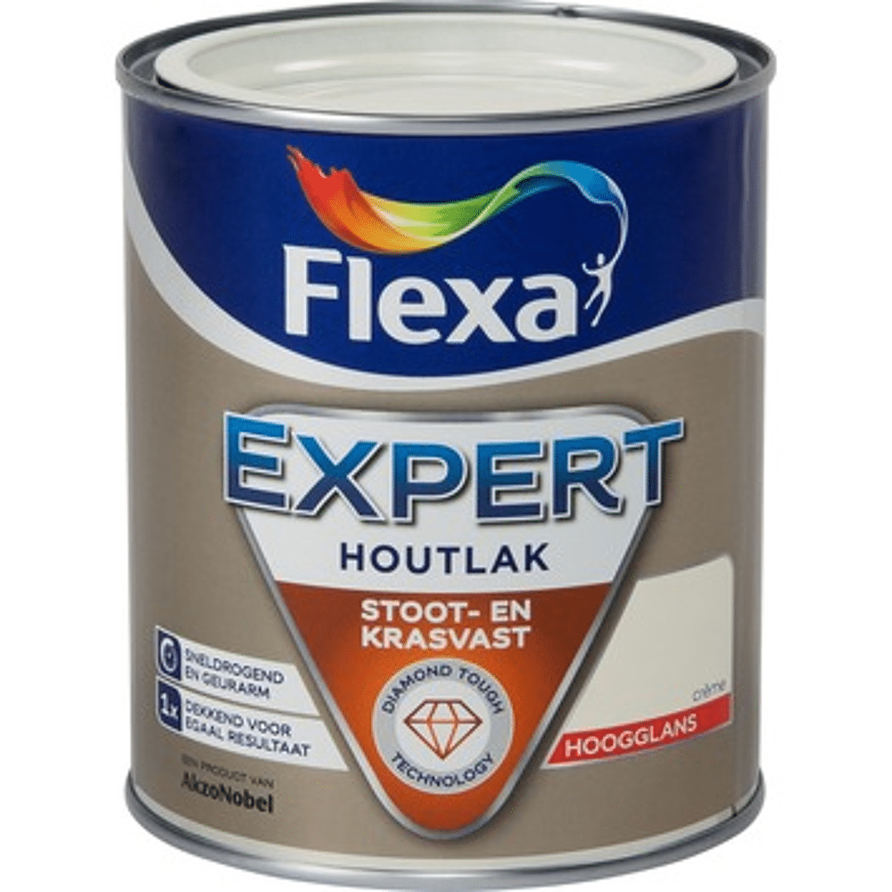- Product: Flexa Expert Houtlak Binnen Hoogglans Crème (Ral 9001)