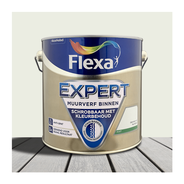 Flexa Expert Muurverf Binnen Flexa Expert Muurverf Binnen geeft uwmuren binnenshuis een langdurige bescherming tegen allerdaagse omstandigheden zoalsbijvoorbeeld vervuiling door kinderhandjes. Door het speciaal ontwikkelde bindmiddel wat aande muurverf is toegevoegd zal vuil namelijk minder makkelijk aanhecht.Flexa Expert Muurverf is daardoor extreem goed schrobbaar zonder dat de kleur vervaagd.Naast dat de muurverf goed reinigbaar is heeft deze een goede dekking, gemakkelijk teverwerken en spat niet. table { border-collapse: collapse; width: 100%; } th, td { text-align: left; padding: 8px; } tr:nth-child(even) { background-color: rgba(255, 130, 0, 0.2); } Eigenschappen Soort verf: Muurverf Glans: Mat Geschikt voor: Muren en plafonds Ondergrond: Beton en steenachtige ondergronden Toepassing: Binnen Kleur: Wit Verwerking: Kwast of roller Theoretisch rendement: ca. 8m²/l Reinigbaar: Zeer goed Inhoud: 2,5 liter Basis: Water Verwerkingstemperatuur: van 10°C tot 20°C Droogtijd: Stofdroog na ca. 2 uur (bij 20°C) Overschilderbaar: Na ca. 6 uur (bij 20°C) Reinigen gereedschap: Met water Verdunning: Het product is gebruiksklaar en hoeft niet verdund te worden. Roeren voor gebruik. EAN: 8711113117937 De beste verf voor de laagste prijs! Bij De Voordeelmarkt vind je topmerken verf, maar dan goedkoop! Door ons ruime assortimentmet goedkope verf vind je altijd de verf die je zoekt. Diverse verven zijn al klaar voorgebruik en anderen kun je door ons op kleur laten mengen. Met onze kleurkiezer kun je alle kleuren bekijken die wij kunnen mengen. Online of inde winkel ! Let wel dat op kleur gemengde verven nietretourneerbaar zijn. Toch niet helemaal zeker hoe je jouwklus gaat aanpakken? Met onze stappenplan helpen wij je graag om tot een prachtig eindresultaat te komen. Zo heb je niet alleen goedkoopjouw klus geklaard, maar ook met een extra steuntje in de rug. Dat is nog eens voordeel! Twijfel je over welke verf te gebruiken?Neem contact op met onze klantense