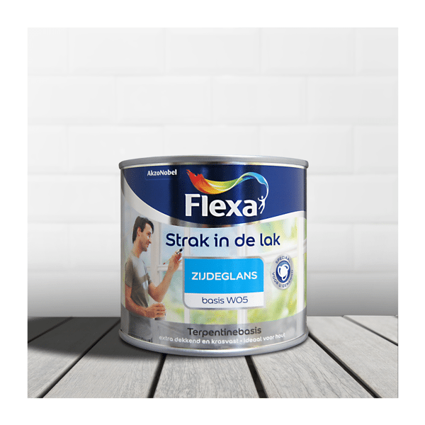 Flexa Strak in de Lak Alkyd Zijdeglans is een oplosmiddelhoudende zijdeglanslak die zowel binnenshuis als buitenshuis te gebruiken is.
