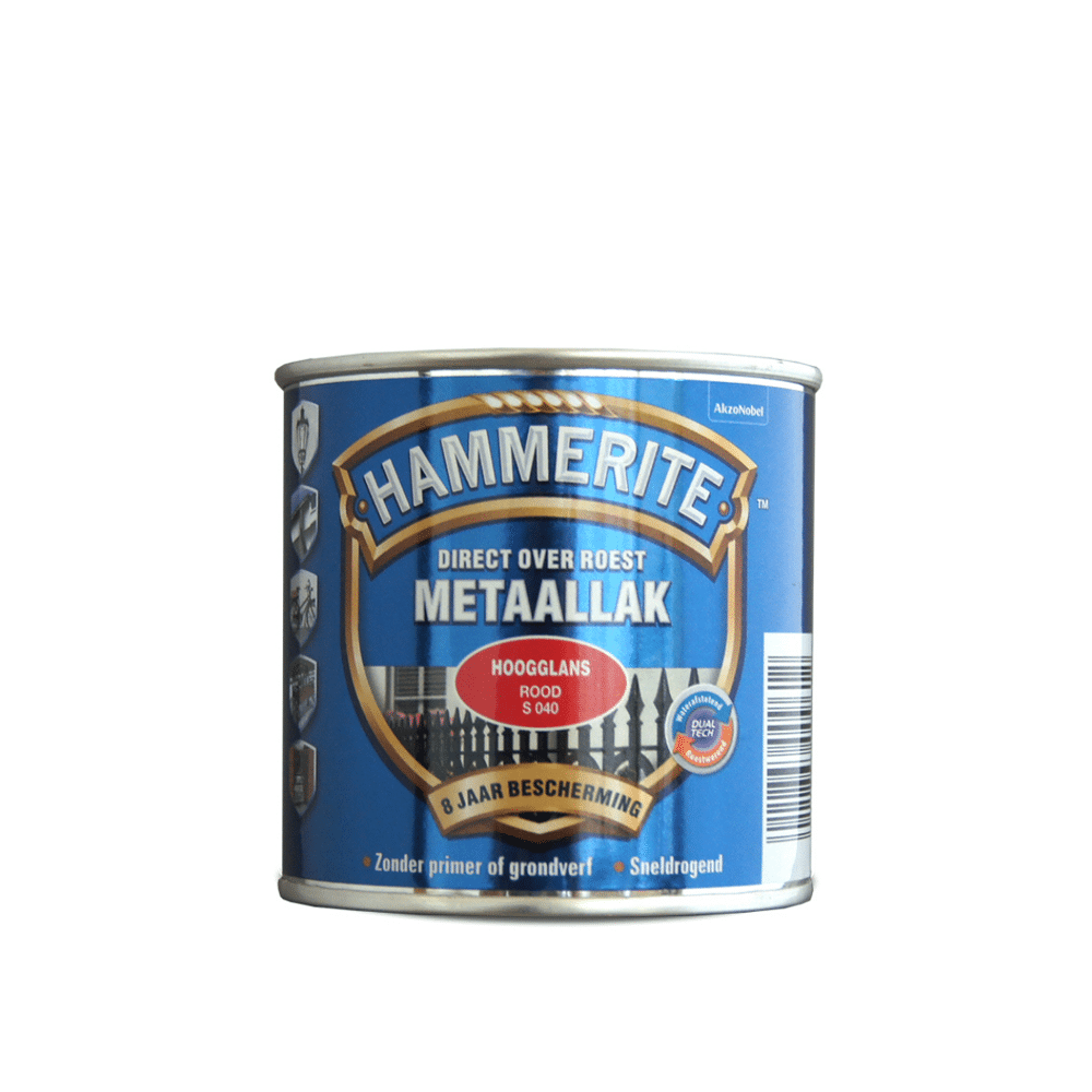Hammerite Hoogglans Rood S040 is een decoratieve, roestwerende metaallak. Dankzij de innovatieve DUALTECH-technologie biedt deze lak een dubbele bescherming: