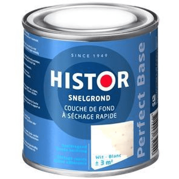 Met Histor P.B. Snelgrond creëer je een goede ondergrond voor verdere afwerking met lak of verf. De witte kleur helpt om een egale basis te vormen en draagt bij aan een mooi eindresultaat. Dankzij de inhoud van 0,25 liter is dit product bijzonder geschikt voor kleine oppervlakken, reparaties en detailwerk.