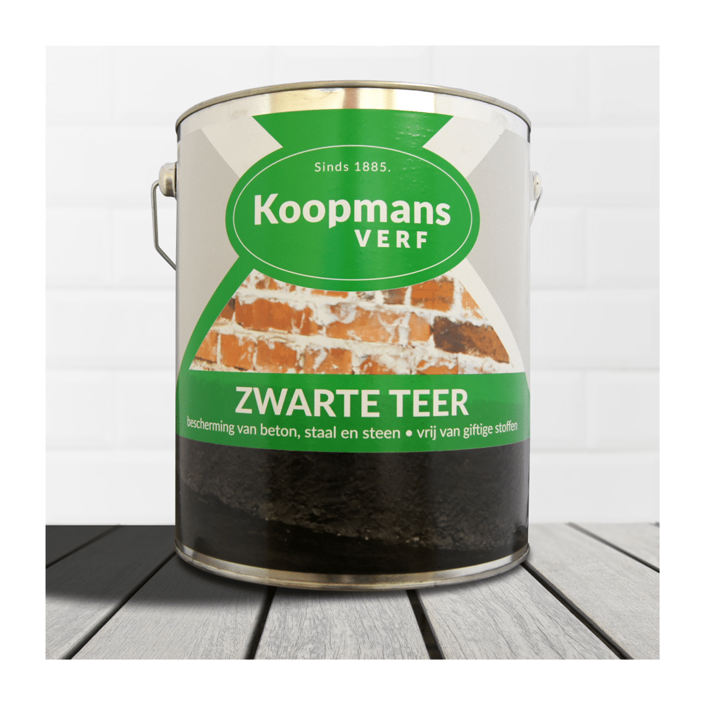Zwarte Teer is een beschermingsproduct op basis van teervrije bitumen. Het wordt onder andere gebruikt voor het snel en eenvoudig afwerken van staal, beton of (bak)steen wat blijvend in contact komt met grond of water. Denk hierbij aan betonnen of stenen funderingen, de binnenzijde van vijverbakken of drinkwaterbakken en andere objecten buiten. De objecten dienen niet of nauwelijks bloot komt te staan aan direct zonlicht (UV). • - Rechtstreeks over beton, steen of metaal - Snel drogend • - Omgevingsvriendelijk: brand niet op de huid of planten