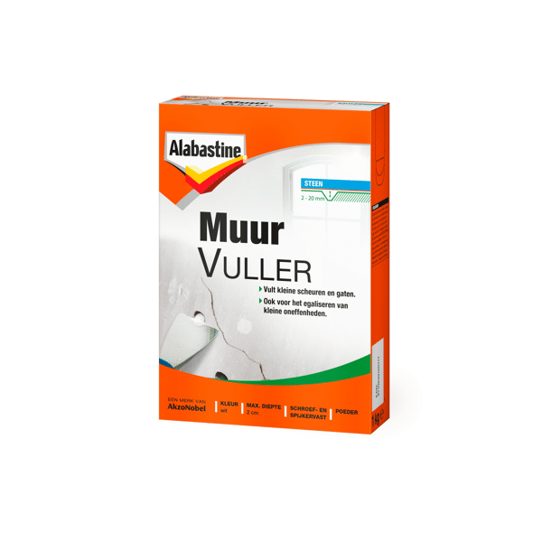 Alabastine Muurvuller is geschikt voor het vullen van kleine gaten en scheuren in muren en plafonds.