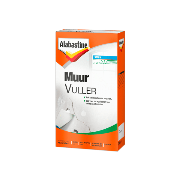 - Mengverhouding: 1 deel water op 2 delen Alabastine Muurvuller.