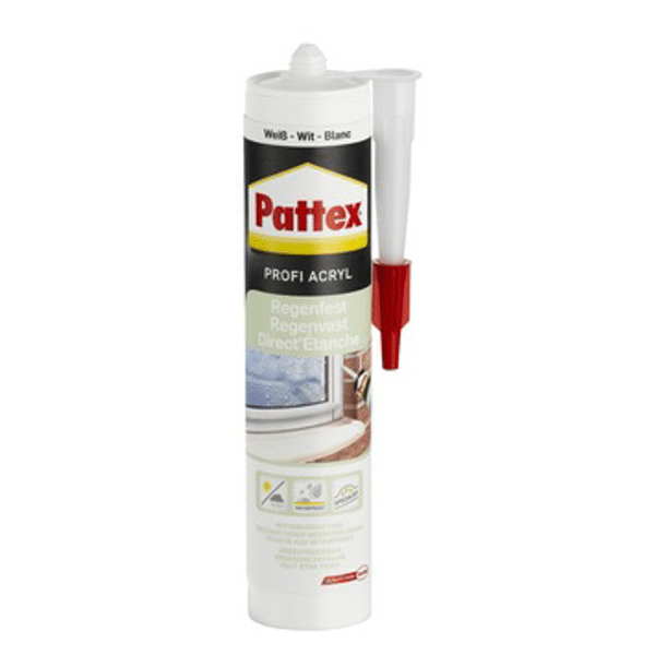 Pattex Acrylaatkit Regenvast is perfect bruikbaar buitenshuis omdat het snel bestand is tegen water. Dankzij de unieke formule hardt deze acrylaatkit veel sneller uit dan een traditionele acrylaat voegkitten. Pattex Regenvaste Acrylaatkit is onder andere geschikt voor alle afdichtingen buitenshuis tussen muren en raam- of deurkozijnen (zowel uit hout, aluminium of PVC), langs dorpels, langs buitenplinten.