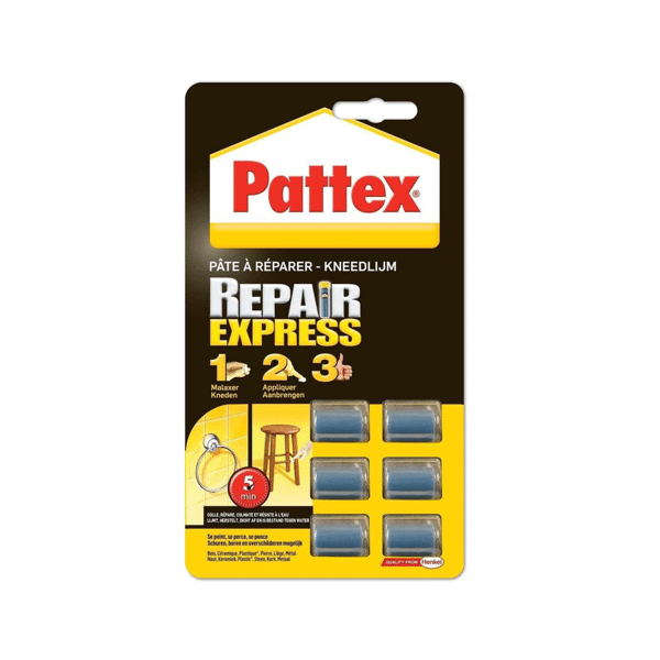 Repareer Alles met Gemak met Pattex Repair Express Kneedlijm Heb je een snelle en sterke oplossing nodig voor reparaties in huis? Pattex Repair Express Kneedlijm is jouw redder in nood. Deze veelzijdige kneedlijm is perfect voor het lijmen, herstellen, vullen en dichten van bijna elk materiaal zoals hout, metaal, steen, en zelfs glas. Het werkt snel, in slechts 5 tot 7 minuten, en is supersterk, waardoor het ideaal is voor zowel kleine als grote reparaties. Werkt Overal, Zelfs Onder Water Wat Pattex Repair Express echt uniek maakt, is dat je het zelfs op vochtige oppervlakken of onder water kunt gebruiken. Of je nu een lek in je zwembad moet dichten of een gebroken vaas wilt repareren, deze kneedlijm klust het voor je. Na Reparatie Bewerkbaar Na uitharding is Pattex Repair Express niet alleen sterk, maar ook flexibel in gebruik. Je kunt het gepolijst, geschuurd, geboord of gefreesd krijgen, waardoor het de perfecte afwerking biedt voor elke reparatie. Met Pattex Repair Express Kneedlijm in huis zijn reparaties geen probleem meer. Het is snel, krachtig en biedt een duurzame oplossing voor al je reparatiebehoeften. Probeer het nu en maak je leven een stukje makkelijker. Eigenschappen Type: Universele lijm Kant-en-klaar: Ja Materiaal doeloppervlak: Universeel Toepassingsgebied: Binnen en buiten Kleur: Wit (na droging) Overschilderbaar: Ja Inhoud: 30 gram EAN: 3178040671454