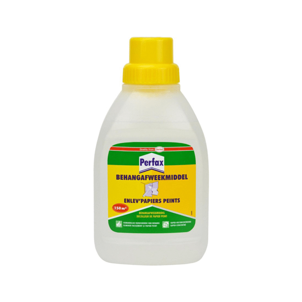 Perfax Behangafweekmiddel voor het gemakkelijk afweken van oud behang en lijmverf. Eén fles van 1000 ml volstaat voor het verwijderen van 150 tot 300m² oud behangpapier. Eigenschappen: • Verwijdert veilig en snel behang • Verwijdert 150 tot 300m² oud behangpapier Heb je vragen over dit product stel ze gerust aan de klantenservice van DeVoordeelmarkt.com. Wij helpen je graag! Via contactformulier, mail (klantenservice@devoordeelmarkt.com) of telefonisch (085-2738338) zijn wij op werkdagen van 8:30-17:00 uur bereikbaar.