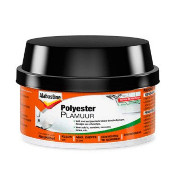 Met Alabastine Polyesterplamuur repareer je gemakkelijk en eenvoudig scheuren, gaatjes en kleine deukjes in metaal en polyester. De plamuur is gemakkelijk te verwerken en zorgt voor een glad eindresultaat. Polyesterplamuur is sneldrogend, je kan deze na 20 minuten al schuren. Nadat de plamuur is uitgehard geeft het een ijzersterke laag die uitstekend hecht aan de ondergrond van metaal of polyester. Voordelen: • Vult kleine beschadigingen, deukjes en scheurtjes • Ijzersterk • Uitstekende hechting • Sneldrogend • Eenvoudig te schuren
