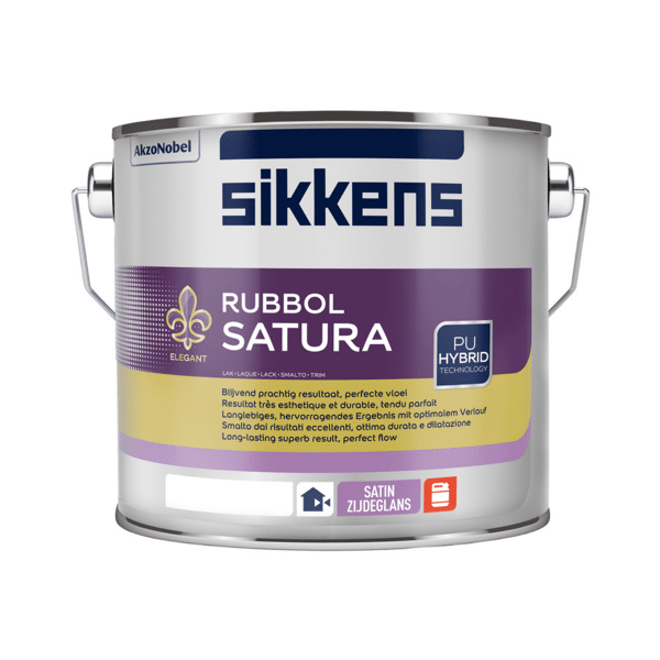 Sikkens Rubbol Satura Sikkens Rubbol Satura is een zijdeglans lakverf voor buitenshuis. Sikkens Satura heeft door de speciale samenstelling van bindmiddelen, inclusief PU, extreem kras- en slijtvaste eigenschappen waardoor jij een glad en krasvast eindresultaat krijgt. Met dit product geeft jouw voorbehandeld hout en metaal een zijdeglanzende uitstraling met een onderhoudscyclus van 3-4 jaar. Door de samenstelling van Sikkens Rubbol Satura zal de verf in wit en lichte kleuren bij gebruik binnenshuis licht vergelen.