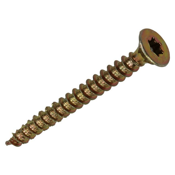 Mack Spaanplaatschroef Torx De geelverzinkte spaanplaatschroeven van Mack met een torxkop zijn geschikt om te gebruiken voor alle soorten hout, zoals hardhout of spaanplaten. In combinatie met een plug kan je ze ook in steen gebruiken. De schroeven hebben een gefreesde punt wat het splijten van het hout voorkomt, voorboren is dus niet nodig. Doordat de schroeven zijn voorzien van een torxkop kan je deze extra stevig aandraaien. De verzonken kop zorgt voor een gladde afwerking. In een verpakking zitten 65 schroeven met een afmeting van 4,0 x 30 mm.