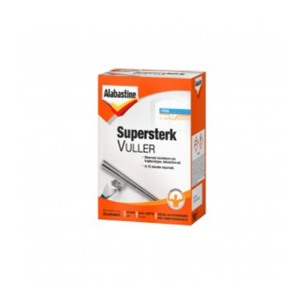 Alabastine Supersterk Vuller Steen voor het muurvast verankeren van trapleuningen, hekwerken, gordijnrails, schakelkasten, contactdozen, losse stenen, verankeren van regenpijpen e.d. • Uitstekende hechting op steen (metselwerk), beton, pleister- en stucwerk. • Hecht ook op vochtige ondergronden. • Ook geschikt voor vochtige ruimtes en kelders. • Sneldrogend, in 15 minuten muurvast. • Afhankelijk van ondergrond en temperatuur af te werken na ± 1 uur. • Ijzersterk, de reparatie kan belast worden na 24 uur. • Maximale laagdikte: 5 cm. Maximale diepte: 10 cm. • Bestand tegen vocht en water en krimpt niet. • Alabastine Supersterk Vuller Steen is een product op cementbasis. •Voor binnen en buiten. Heb je vragen over dit product, neem dan contact met onze klantenservice. Zij zijn bereikbaar via WhatsApp of contactformulier op werkdagen van 8:00-17:00.