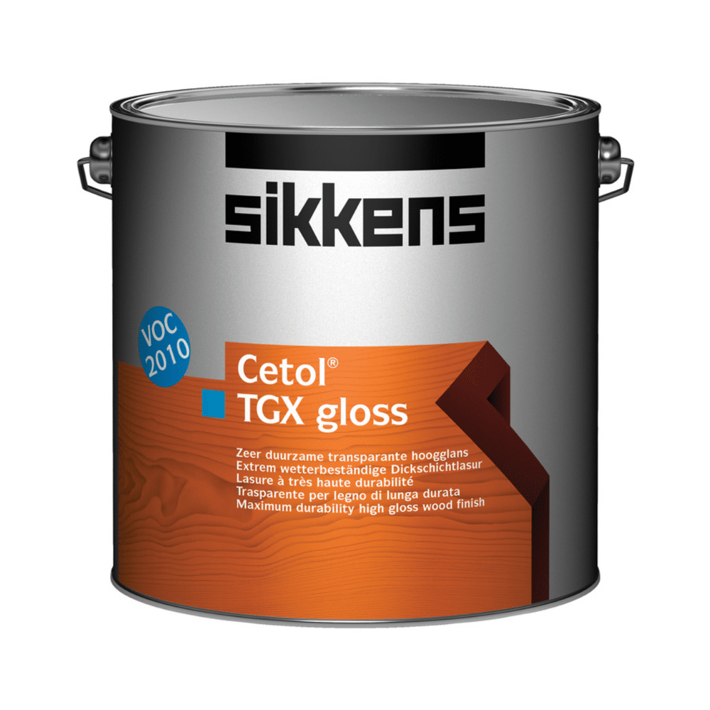 Sikkens Cetol TGX Gloss is een duurzame, transparante hoogglanslak op terpentinebasis voor hout. Deze lak is geschikt voor het duurzaam afwerken van houten constructies zoals kozijnen en deuren buitenshuis.