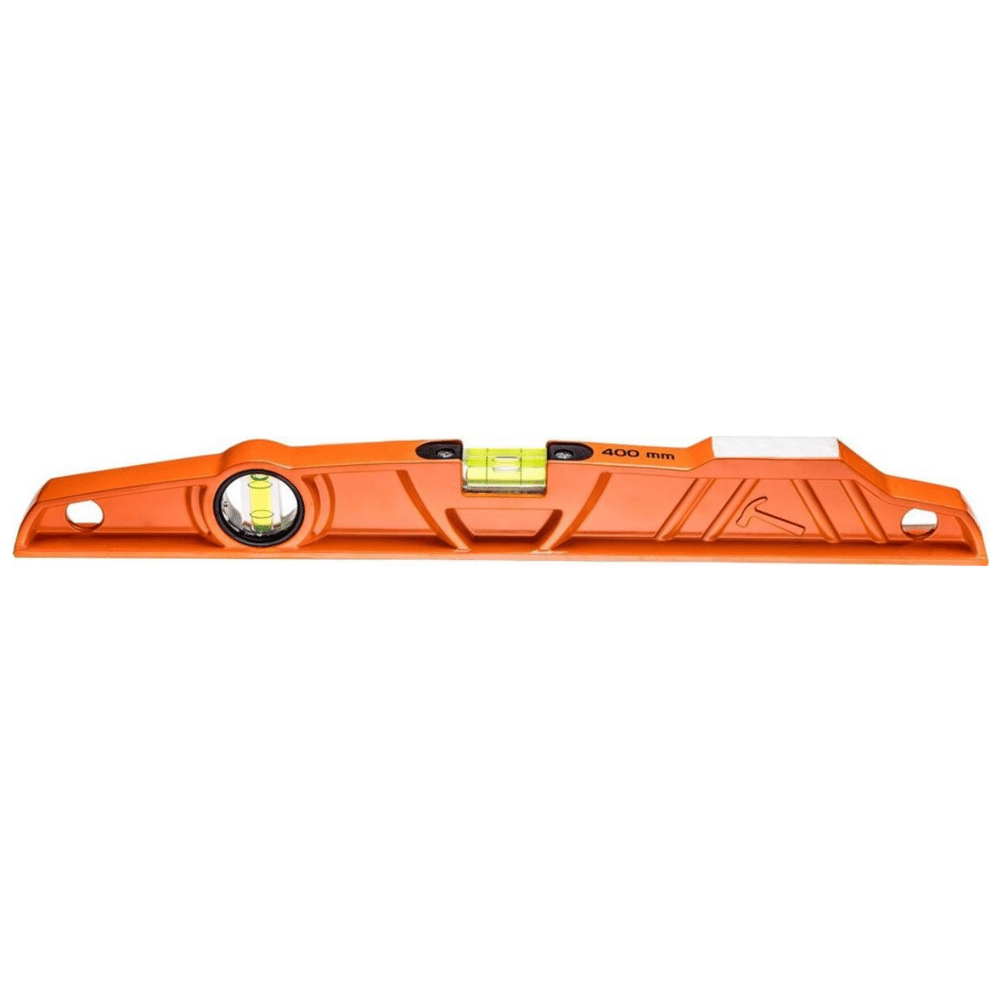 Neo Tools Waterpas Aluminium 400 mm - Nauwkeurige Metingen in Oranje De Neo Tools Waterpas Aluminium 400 mm is uitgerust met 2 libellen, waardoor je eenvoudig horizontale en verticale metingen kunt uitvoeren. Met deze waterpas kun je snel en gemakkelijk controleren of een oppervlak perfect waterpas of loodrecht is. Precisie van 0,5 mm/m voor betrouwbare resultaten Met een precisie van 0,5 mm/m biedt deze waterpas uiterst nauwkeurige meetresultaten. Of je nu bezig bent met bouwprojecten, installatiewerkzaamheden of andere klussen, je kunt vertrouwen op de precisie van deze waterpas voor professionele resultaten. Gemaakt van duurzaam aluminium voor langdurig gebruik Deze waterpas is vervaardigd uit hoogwaardig aluminium, waardoor hij lichtgewicht en tegelijkertijd stevig is. Het materiaal is bestand tegen slijtage en corrosie, waardoor de waterpas lang meegaat en betrouwbaar blijft, zelfs bij intensief gebruik. Lengte van 400 mm voor veelzijdigheid Met een lengte van 400 mm biedt deze waterpas voldoende bereik voor verschillende meettaken. Of je nu kleine of grotere oppervlakken wilt controleren, deze waterpas heeft de juiste afmetingen om aan je behoeften te voldoen. Opvallende oranje kleur voor eenvoudige herkenning De Neo Tools Waterpas Aluminium 400 mm is uitgevoerd in een opvallende oranje kleur. Hierdoor is hij gemakkelijk te herkennen en terug te vinden in je gereedschapskist of op de werkplaats. Met deze waterpas kun je efficiƫnt en accuraat werken, zonder kostbare tijd te verspillen aan het zoeken naar je meetinstrument. Voeg de Neo Tools Waterpas Aluminium 400 mm toe aan je gereedschapscollectie en geniet van nauwkeurige metingen in een handige en duurzame waterpas. Met 2 libellen, een precisie van 0,5 mm/m, een lengte van 400 mm en een opvallende oranje kleur, is deze waterpas een betrouwbare metgezel voor diverse klussen.